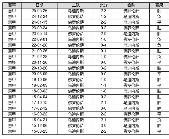 佛罗伦萨 VS 乌迪内斯两队近10年的交战次数为22场,佛罗伦萨11胜6平5负,赢球概率为50.0%,平局概率为27.3%,输球概率为22.7%。