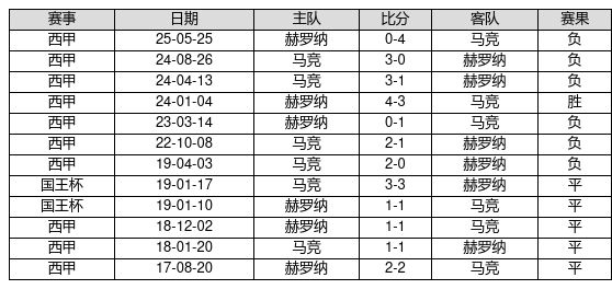 赫罗纳 VS 马竞两队近10年的交战次数为12场,赫罗纳1胜5平6负,赢球概率为8.3%,平局概率为41.7%,输球概率为50.0%。