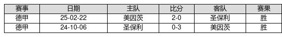 好意思因茨 VS 圣保利两队近10年的交战次数为2场,好意思因茨2胜0平0负,赢球概率为100.0%,平局概率为0.0%,输球概率为0.0%。