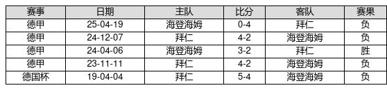 海登海姆 VS 拜仁两队近10年的交战次数为5场,海登海姆1胜0平4负,赢球概率为20.0%,平局概率为0.0%,输球概率为80.0%。