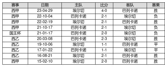 埃尔切 VS 巴列卡诺两队近10年的交战次数为10场,埃尔切5胜2平3负,赢球概率为50.0%,平局概率为20.0%,输球概率为30.0%。